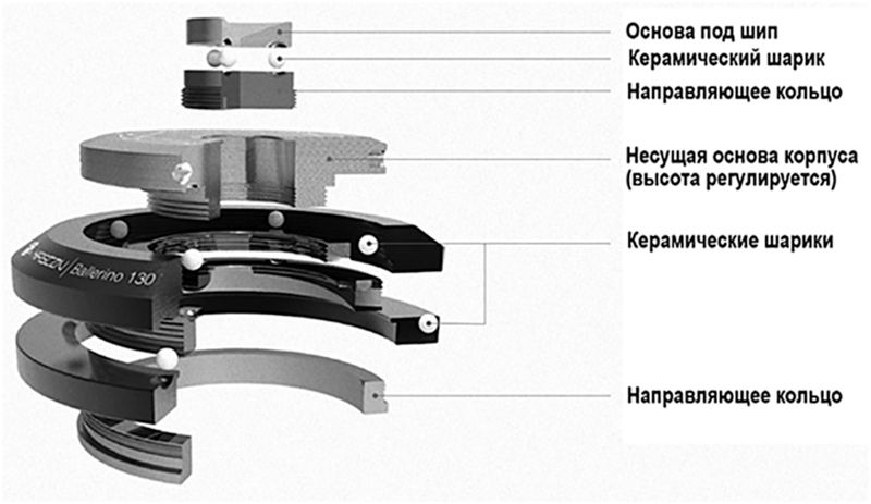 Подставка сделана из дюралюмина, нержавеющей стали и имеет плавующую структуру с одноуровневыми подшипниками из керамических шариков.